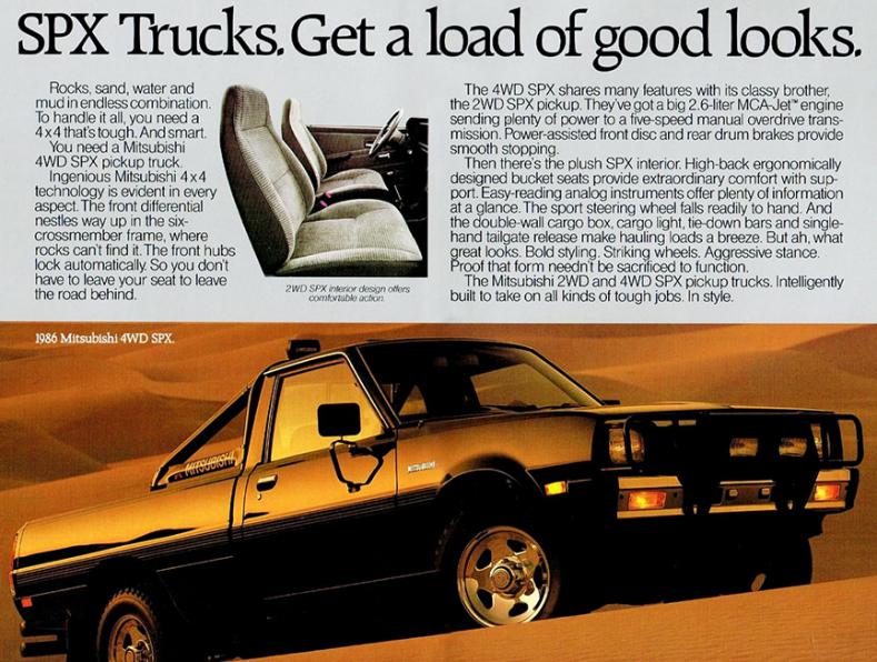 The price tag on a loaded '83 SPX was nearly double that of its Mighty Max sibling, so Mitsubishi pushed the entry-level model the hardest.